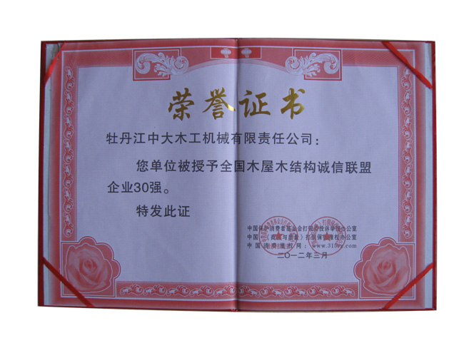企業(yè)30強(qiáng)榮譽(yù)證書